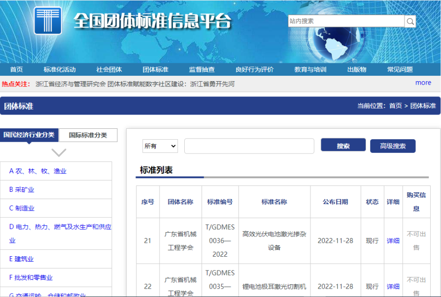 2022年11月28日,海目星聯(lián)合中汽檢測技術(shù)有限公司、中國電器科學(xué)研究院股份有限公司、廣東省機(jī)械工程學(xué)會(huì)共同起草的T/GDMES 0036—2022《高效光伏電池激光摻雜設(shè)備》和T/GDMES 0035—2022《鋰電池極耳激光切割機(jī)》(以下簡稱“兩項(xiàng)團(tuán)體標(biāo)準(zhǔn)”)在全國團(tuán)體標(biāo)準(zhǔn)信息平臺(tái)上正式公布。這是海目星首次發(fā)布團(tuán)體標(biāo)準(zhǔn),意味著公司在標(biāo)準(zhǔn)化、高質(zhì)量發(fā)展上邁出了關(guān)鍵的一步,具有里程碑意義!